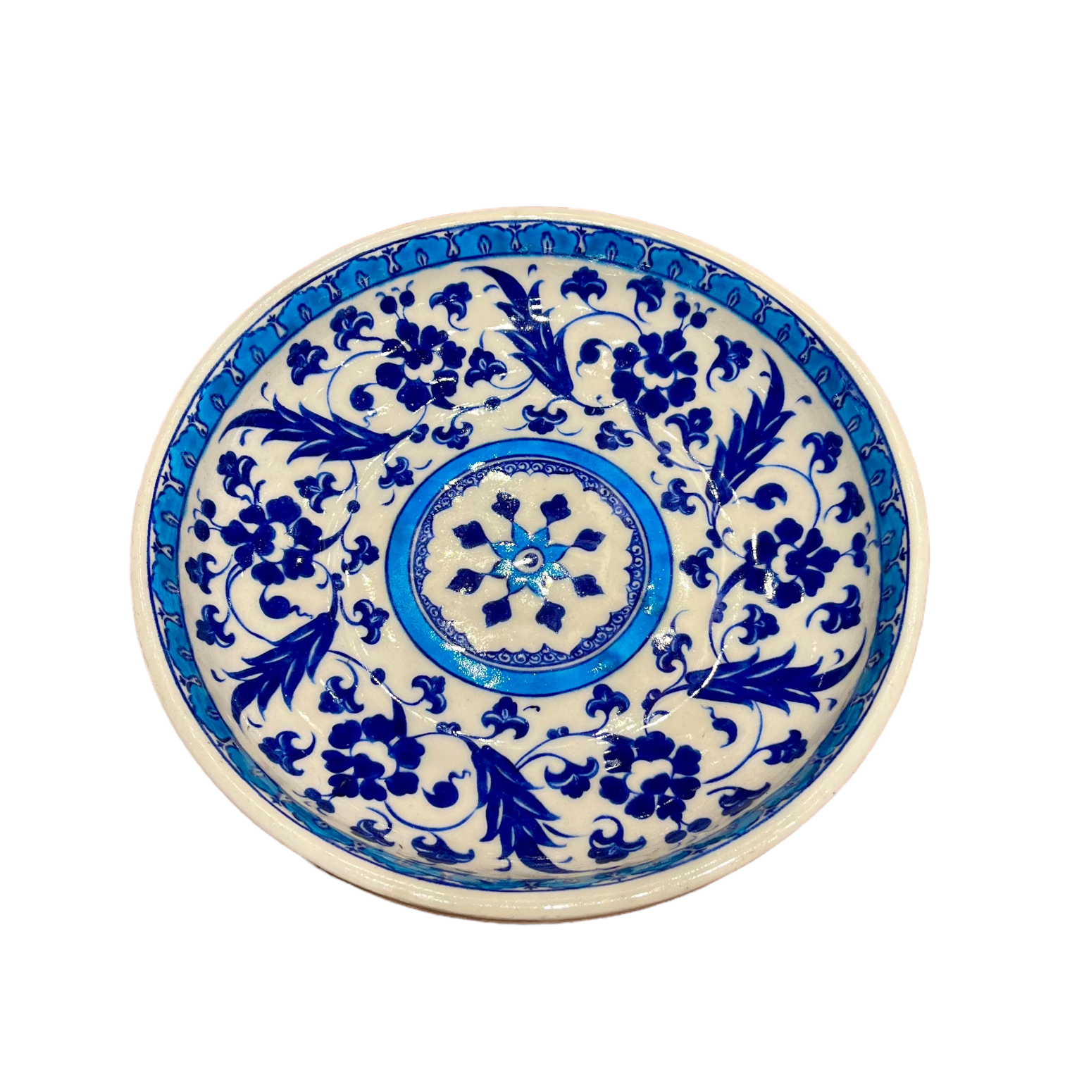 Basil patterned Iznik bowl suitable for everyday use. This handcrafted item features intricate designs inspired by basil leaves, reflecting the rich cultural heritage of traditional Turkish ceramic art. The basil motifs add a natural and elegant touch to the bowl, making it both functional and decorative for serving and enhancing any dining or display setting.