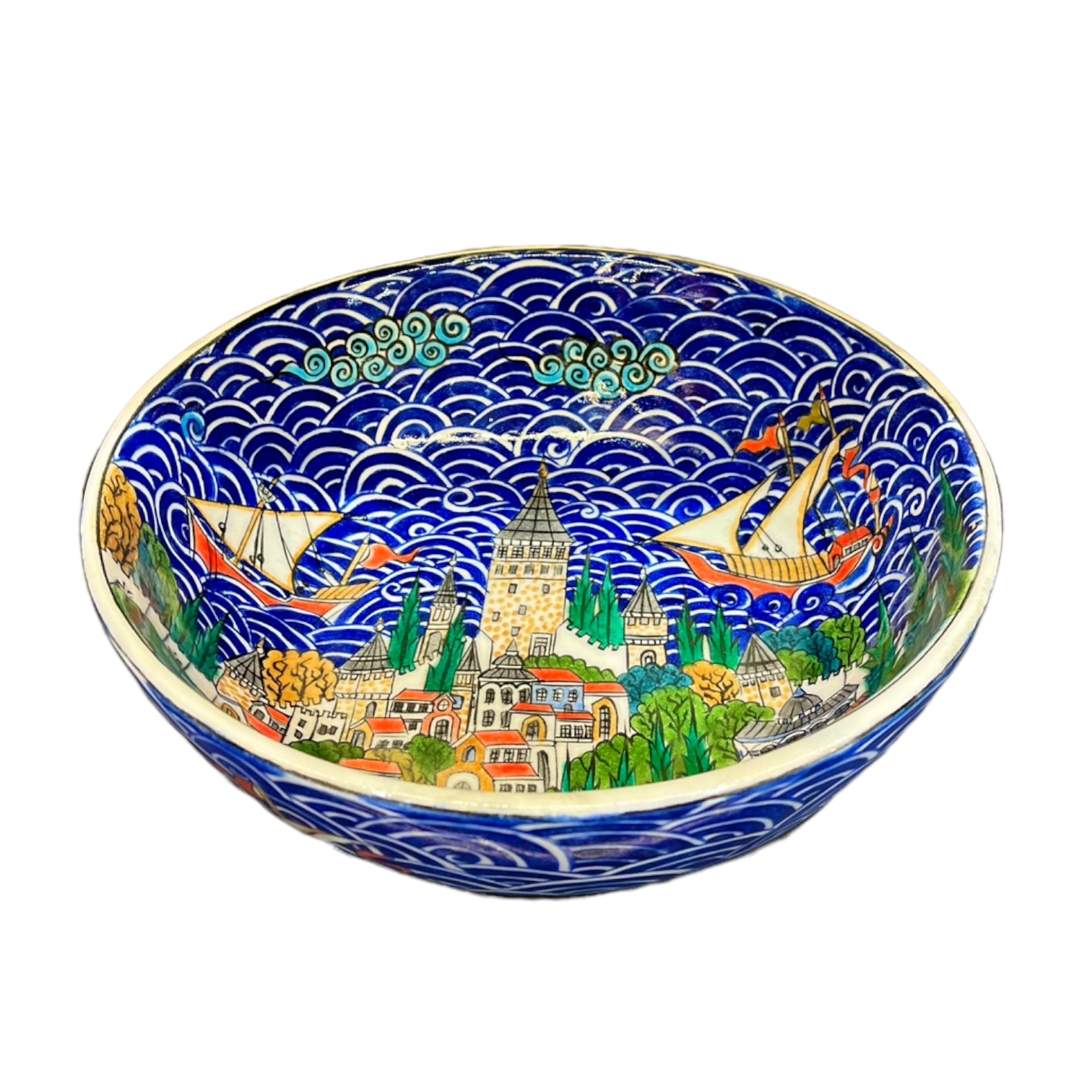 The product is a quartz bowl adorned with a modern miniature illustration of Istanbul, blending aesthetic appeal with cultural significance. This unique design merges the natural beauty of quartz with detailed miniature depictions of Istanbul's historic and contemporary landmarks. The bowl can serve both decorative and functional purposes. The elegant drawings of iconic symbols of Istanbul evoke admiration and nostalgia for the city with every glance.