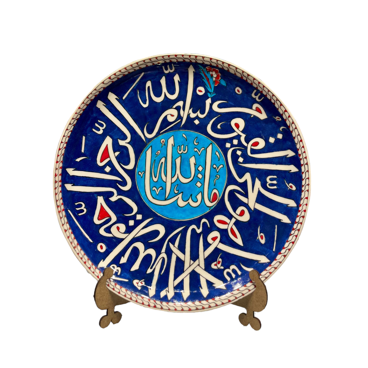 This unique plate is ideal for both decorative purposes and as a meaningful gift. Inspired by Islamic culture, these inscriptions create a serene and peaceful atmosphere in any setting, whether it's at home or in an office. They also provide aesthetic richness, particularly appealing to collectors and enthusiasts of Islamic art and motifs.