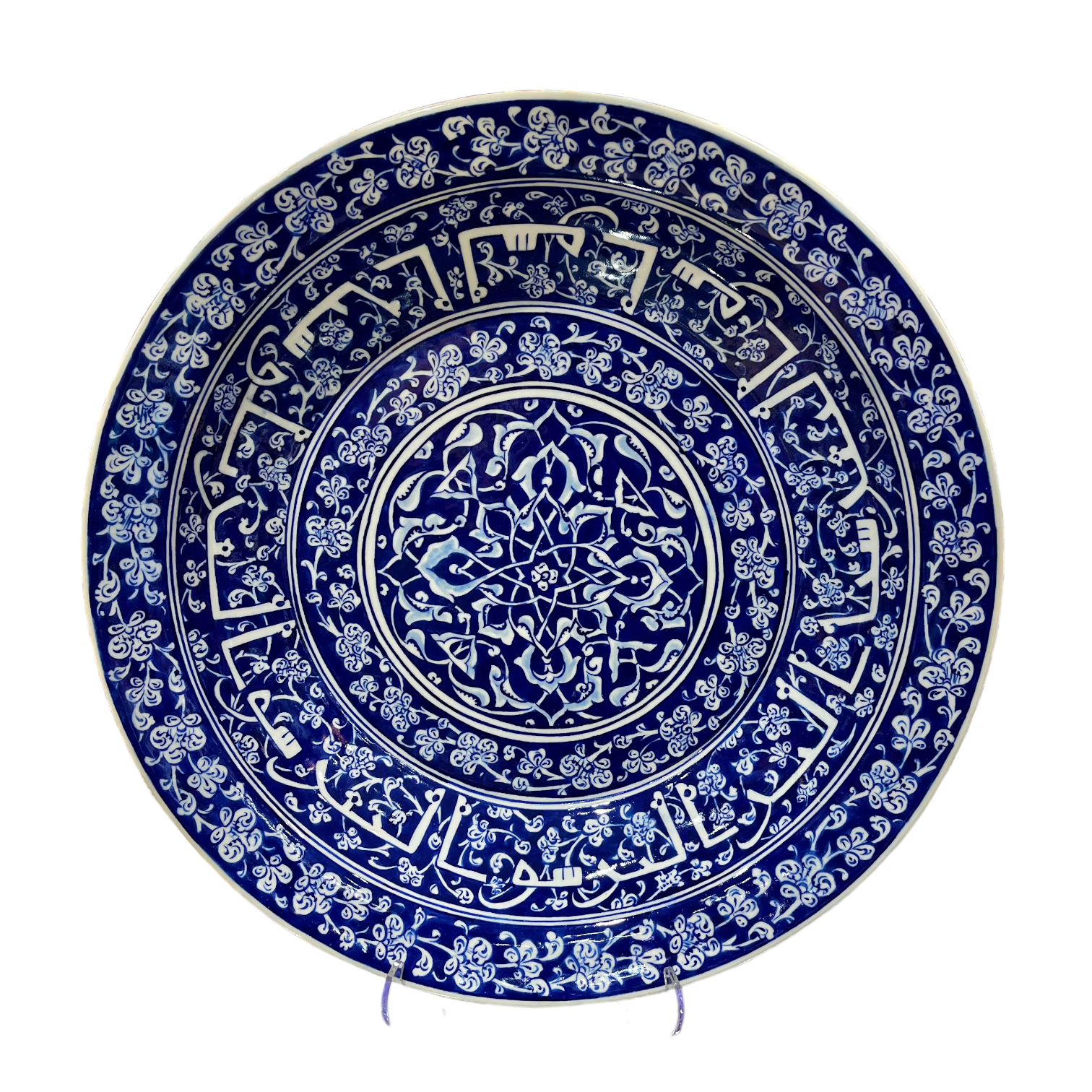 A quartz plate featuring intricate Baba Nakkash Rumi motifs and calligraphy. This handcrafted piece combines traditional art with refined craftsmanship.